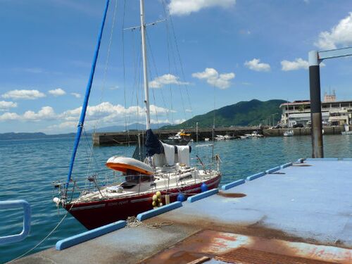 2018.8.13(月) 初めて雲仙、小浜にやってきました。 「小浜」の読み方は日本海の小浜と同じ「おばま」です。 ここは泉大津の「風早后廚気鵑凌篩Α メモを作って渡してくれました。 最初は港湾案内にも無いし、海図を見ても「小浜港」と文字があるだけ。 灯…