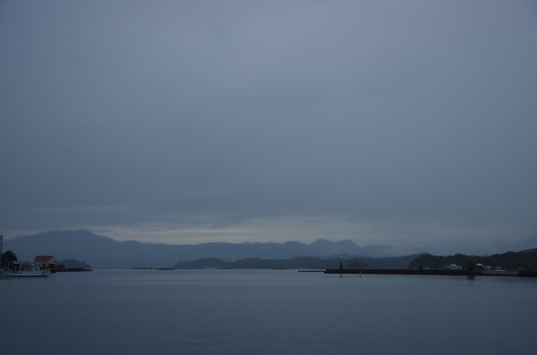 今、6時9分、霧雨。というより濃い霧。