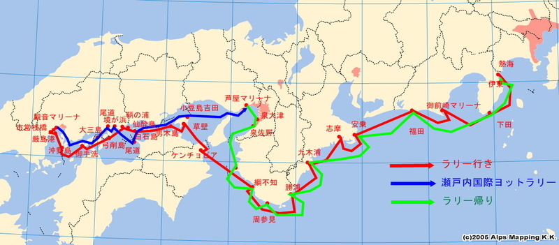 広島観音マリーナをスタート、芦屋マリーナを終点とする約2週間のラリーでした。